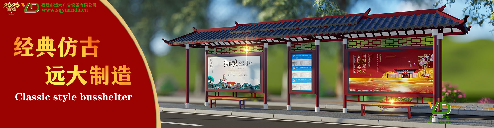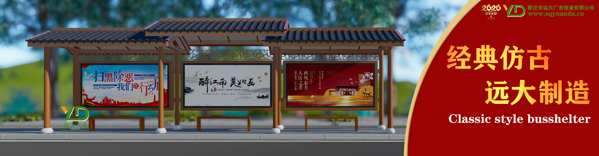 宿遷市遠(yuǎn)大廣告設(shè)備有限公司是一家專業(yè)生產(chǎn)公交候車亭,公交站臺,閱報欄,指路牌,廣告垃圾箱,滾動換 畫燈箱等系列產(chǎn)品廠家!產(chǎn)品多達(dá)上百種,亦可根據(jù)客戶的需求加工制作。